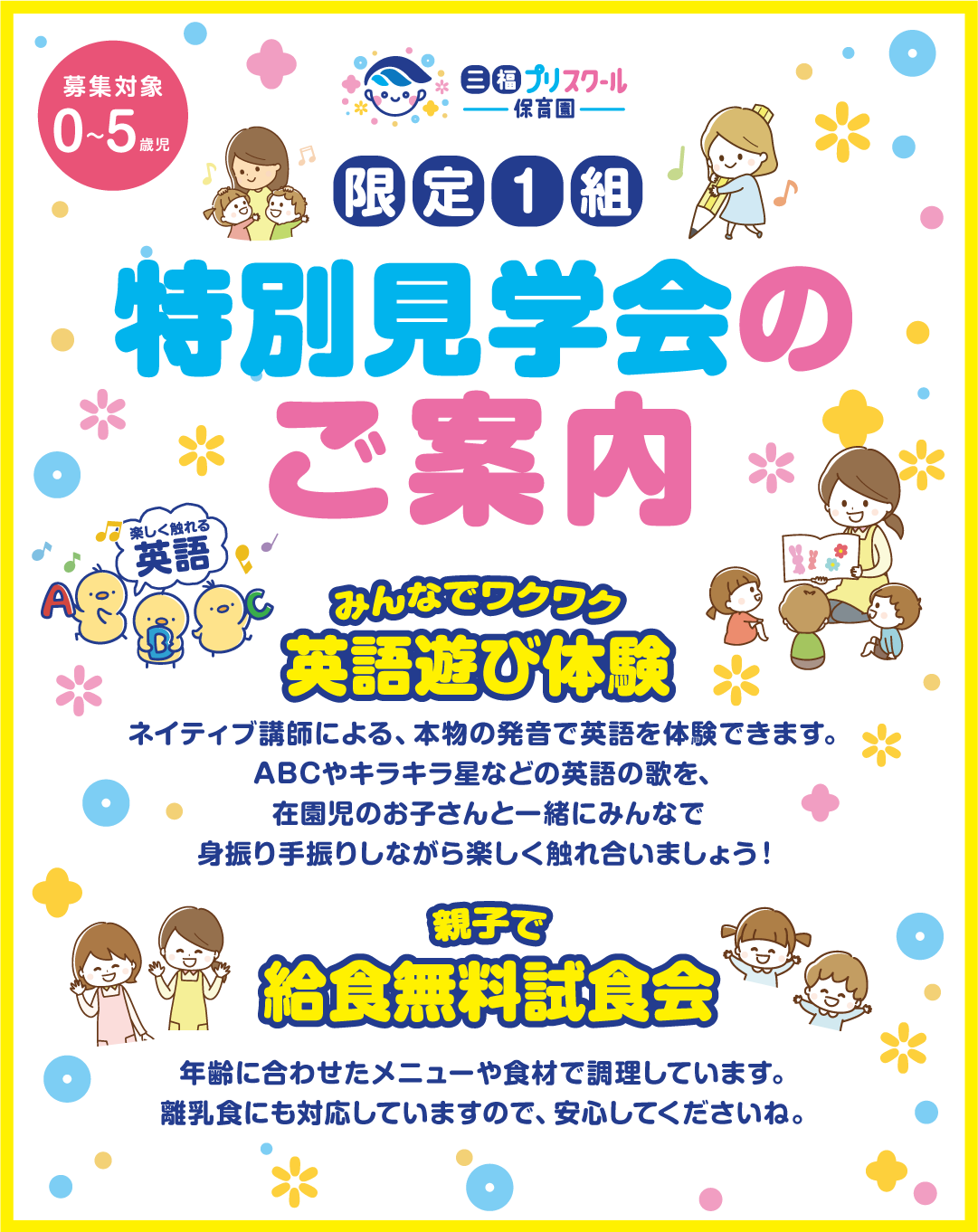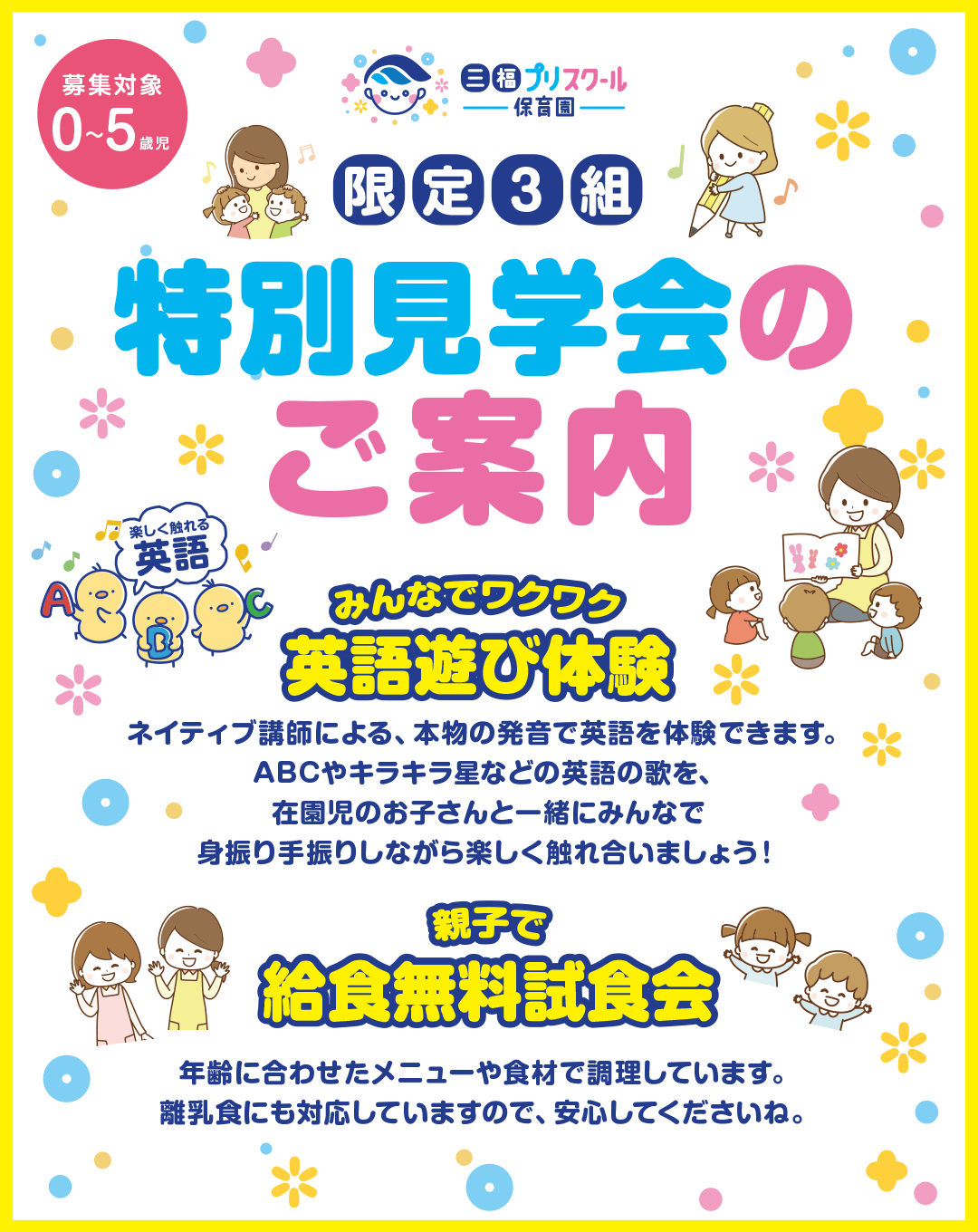 三福プリスクール保育園は、思いやりの心を育てる企業主導型保育園です。