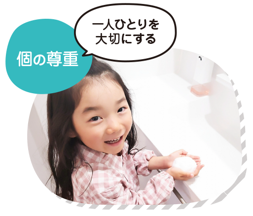 当園は「KIDS FIRST ~何より子どもが最優先~」という保育理念のもと、保育所保育指針(平成 29 年 3 月31 日 厚生労働省告示 1 1 7 号)を踏まえ、環境を通して自己肯定感を育む等以下の教育・保育その他の便宜の提供を行います。